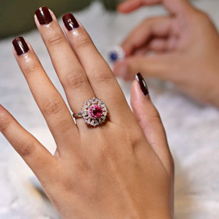 Sterling Silver Modern Italian Pink AD Ring